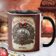 Gör dig redo för högtider i Steampunk-stil med denna festliga julmugg. Designen kombinerar traditionella säsongselement och nostalgi med invecklade kugghjul och mekanismer, inspirerad av den industriella victorianska eran. Den klassiska gröna kransen är dekorerad med tallkottar, rött band och en röd julstjärna, i kombination med metallisk maskineri. I mitten av kransen finns mer vintage-inspirerad mekanik, krönt med antika gotiska ljus. Personalisera med ett namn på framsidan och ditt eget meddelande på baksidan. En stilren present för Steampunk-entusiaster, muggen är idealisk för att koppla av med dina favoritvarma drycker och en touch av nostalgisk science fiction.