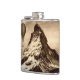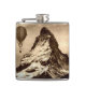 En Steampunk stil-luftballong flyter över Matterhornberget. Digital konst i sepia