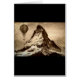 En Steampunk stil-luftballong flyter över Matterhornberget. Digital konst i sepia