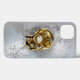 Konceptuellt, mekaniskt, mänskligt huvud med antika manometrar och metall-växlar mot gråttets industriella bakgrund. Steampunk stil.