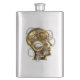 Konceptuellt, mekaniskt, mänskligt huvud med antika manometrar och metall-växlar mot gråttets industriella bakgrund. Steampunk stil.