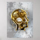 Konceptuellt, mekaniskt, mänskligt huvud med antika manometrar och metall-växlar mot gråttets industriella bakgrund. Steampunk stil.