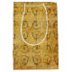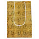 En stressad presentväska med gammaldags cyklar mönster. Sepia tonad, rustik bakgrund med mönster på barncyklar. Använda för födelsedagskalender eller ge gåvor till vilken man som helst.