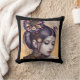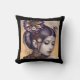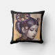 Dekorativ kudde i ett porträtt av en svart prinsessa med tryckfärg, steampunk, med koppar-färgad, metall, blomma i hennes hår och ornerade metall-dekorationer