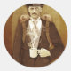 (utvalda många-produkter) Den här dynamiska illustrationen är en ångkrukåtergivning av en herre med en metall typografisk logotyp bakom figur.