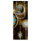 Turcitylinser med en antik klocka med släpredskap och gyllene nycklar på rostfri, brun bakgrund. Steampunk stil.