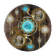Turcitylinser med en antik klocka med släpredskap och gyllene nycklar på rostfri, brun bakgrund. Steampunk stil.