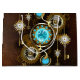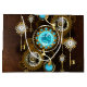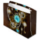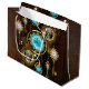 Turcitylinser med en antik klocka med släpredskap och gyllene nycklar på rostfri, brun bakgrund. Steampunk stil.