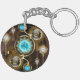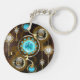 Turcitylinser med en antik klocka med släpredskap och gyllene nycklar på rostfri, brun bakgrund. Steampunk stil.