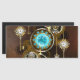 Turcitylinser med en antik klocka med släpredskap och gyllene nycklar på rostfri, brun bakgrund. Steampunk stil.