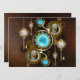 Turcitylinser med en antik klocka med släpredskap och gyllene nycklar på rostfri, brun bakgrund. Steampunk stil.