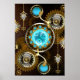 Steampunk Rusty Background med Turquise Lenses Poster