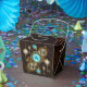 Steampunk Rusty Background med Turquise Lenses Presentaskar