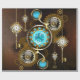 Turcitylinser med en antik klocka med släpredskap och gyllene nycklar på rostfri, brun bakgrund. Steampunk stil.