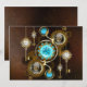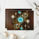 Turcitylinser med en antik klocka med släpredskap och gyllene nycklar på rostfri, brun bakgrund. Steampunk stil.