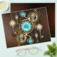 Steampunk Rusty Background med Turquise Lenses Reklamblad