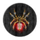 Mekanisk, steampunk-spindel med guld, släpredskap och röd glaslampa på svart bakgrund. Steampunk stil.