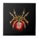 Mekanisk, steampunk-spindel med guld, släpredskap och röd glaslampa på svart bakgrund. Steampunk stil.