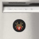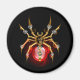 Mekanisk, steampunk-spindel med guld, släpredskap och röd glaslampa på svart bakgrund. Steampunk stil.