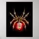 Mekanisk, steampunk-spindel med guld, släpredskap och röd glaslampa på svart bakgrund. Steampunk stil.