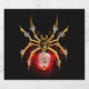 Mekanisk, steampunk-spindel med guld, släpredskap och röd glaslampa på svart bakgrund. Steampunk stil.