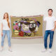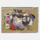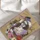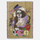 Steampunk-kvinnan day of the dead som bär på sockerskalle. Tryckt mest i lila. Runt henne är växlar, skalle, klocka, ro och nycklar.