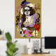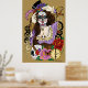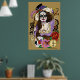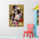 Steampunk-kvinnan day of the dead som bär på sockerskalle. Tryckt mest i lila. Runt henne är växlar, skalle, klocka, ro och nycklar.