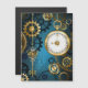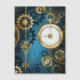 Turkos, texturerad, steampunk bakgrund med släp och guld, silver nyckel och klocka. Steampunk stil.