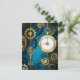 Turkos, texturerad, steampunk bakgrund med släp och guld, silver nyckel och klocka. Steampunk stil.