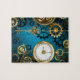 Steampunk turkos Bakgrund med växlar Pussel