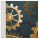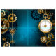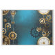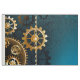 Turkos, texturerad, steampunk bakgrund med släp och guld, silver nyckel och klocka. Steampunk stil.