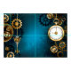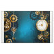 Turkos, texturerad, steampunk bakgrund med släp och guld, silver nyckel och klocka. Steampunk stil.