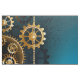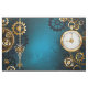 Turkos, texturerad, steampunk bakgrund med släp och guld, silver nyckel och klocka. Steampunk stil.