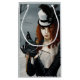 Steampunk rödhårig kvinna ut på en vinter-promenad och släppte ut hennes dragonfly-budbärare med nyckel.