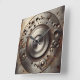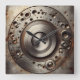 steel object with circles, dents, pits, industrial style, metal look wall clock,