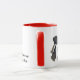 Kaffe mugg med vattenfärgad ko och söt ko pun i svart, vitt och rött.