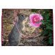 Förtjusande kanin som poserar med en rosa ros! Den mest gulliga stora gåvan hänger lös omkring! Perfekt för påsk eller något tillfälle, liksom en födelsedag.