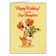 Ett sött födelsedagskort för en fotstegsdotter. En lustig valp som håller en massa blommor och säger "Grattis på födelsedagen". Fira en födelsedag med det här oemotståndliga kortet som visar upp en söt valp med en massa daisy blommor, perfekt för smälter hjärtan.