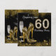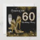 Vacker svart och guldfärgad inbjudan till 60-årsfest med elegant champagneglas och guldfärgade högklackade leopardskor. Du kan enkelt anpassa denna eleganta svarta och guldfärgade inbjudan till din 60-årsfest genom att bara lägga till dina detaljer i önskad teckensnittsstil och färg, samt formulering.