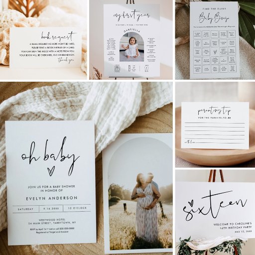 Upptäck vår Stella Collection-allyr, som är noggrant utformad för att infektera din babydusch med en luft av modern minimalism och en aning edgy sofistikering. Designad för att sömlöst blanda bohemisk charm med tidlös elegans, garanterar denna mångsidiga samling att upphöja estetiken i vilken stil babydusch som helst och förvandla firande till en oförglömlig händelse. Stellainsamlingens kärna ljuger ett modernt och unikt typsnitt, som noggrant kurveras för att förkroppsliga det väsentliga i minimalistisk design samtidigt som man utstrålar en fängslande tecknad. Det här teckensnittets eleganta linjer och konstnärliga blomning kombineras sömlöst och skapar en inbjudningssvit som är visuellt slående och verkligt enastående.
