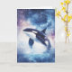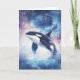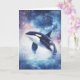 En häpnadsväckande bild av en orca som svävar genom ett kosmiskt hav av stjärnor och nebulae. Orcas kropp blandas sömlöst med galaxen, med skuggor av djupa blåsor, lila och vita som fyller bakgrunden. Stjärten himmel och den mjuka glöden runt valen skapar en mesmarsande, eterisk atmosfär, som framkallar en känsla av och samband med det stora universum. Denna bild fångar både det marina livets storhet och cosmos skönhet i en drömliknande, känsloladdad situation.