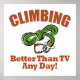 BÄTTRE ÄN TV NÅGON DAG! Snarare klättra utomhus än inomhus och titta på tv? Den här är till dig. Rik färg och unik utformning - grönt, kokt klätterrep och brinnande karabiner för orange. Underbar gåva till klättrar - barn eller vuxnor.