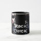 Vit och svart 11 oz. Kombinera mugg med en bild på båda sidor av en sten-chick och den valfria termen "Sten Chick" i silver-skrift på svart. Se matchande kolv och papper plåt. Se hela Tubular 80s Mugg-samlingen i FOOD/BEV | Avsnittet Dagar.