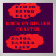 logotyp av sten och rullmeddelande BIMBO BONGO FLADDERMUS. STEN ON ROLLER UNDERLÄGG BANGA BANGLA BASH. röd lila poster