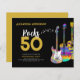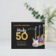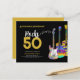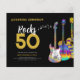 Personliga 50-årsfirande inbjudningskort med tre coola akvarellgitarrdesigner. En elgitarr med färgglatt mönster och vit pickguard, en mångfärgad halvakustisk gitarr och en psykedelisk klassisk akustisk gitarr-illustration med personlig modern svart och guld typografi. Denna lättanvända mall skapar den perfekta inbjudan för att fira femtioårsdagen i rock n roll-stil och är idealisk för en gitarrist, musiker och musikkännare. Varje gitarrspelare kommer att berätta för dig att man aldrig kan ha för många gitarrer. Denna coola moderna musikinstrumentdesign firar musiken energin hos detta underbara musikinstrument och är det perfekta sättet att rocka en femtioårsfirande. Originalkonst av konstnären Catherine Sweetman