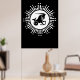 Denna djärva svart-vita design har Capricorns zodiakalsymbol, illustrerad som en mystisk get med en svans i en strålande stjärnexplosion i en cirkel. Omgiven av strålar och stjärnor framhäver bilden styrka, beslutsamhet och ambition som förknippas med detta astrologiska tecken. Den högkontrastrika siluetten och det himmelska inramningen ger den en tidlös kosmisk känsla, perfekt för dem som omfamnar Capricorns kraftfulla väsen.