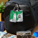 Metallisk silver och grönt, rostfritt stål, coolans geometriska utformning. Valfritt monogram.