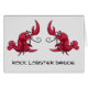 Rolig tecknad som dansar den röda humret med den lyftta klokniptången. Alternativ som tillfogar eller som ändrar text: Stenhummerdans