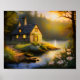 Denna fridfulla målning av ett stenhus inbäddat i skogen längs en lugnt flytande flod fångar naturens stillhet och charm. Med rika texturer, jordnära toner och lugna vattenreflektioner ger den en mysig, rustik stämning till alla utrymmen. Perfekt för stugdekor, naturälskare eller någon som dras till idylliska skogsscener.stic