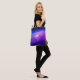 A far-away galaxy is on the front and back of this tote bag.